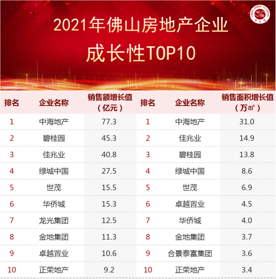 特别声明:佛山房企销售数据增长值是以2021年同比2020年的商品房销售数据差值为统计口径,主要依据中指数据CREIS(点击试用)在佛山的销售监测数据,并参考当期总体经营情况和推盘去化情况进行分析统计;对于少数没有在监测范围内的项目,由企业提供相关证明文件,经课题组对数据进行严格审核,也纳入统计范围。本报告仅供参考,课题组不对使用报告及其内容所引发的任何直接或间接损失承担责任。