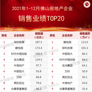 2021年佛山房地产企业销售业绩TOP20