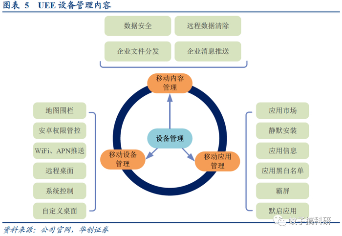 ✔设备管理:公司从移动应用管理(MAM)、移动设备管理(MDM)以及移动内容管理(MCM)三个维度进行一站式生命周期管理,实现各个环节的无缝衔接,进一步提升企业的运营效率。