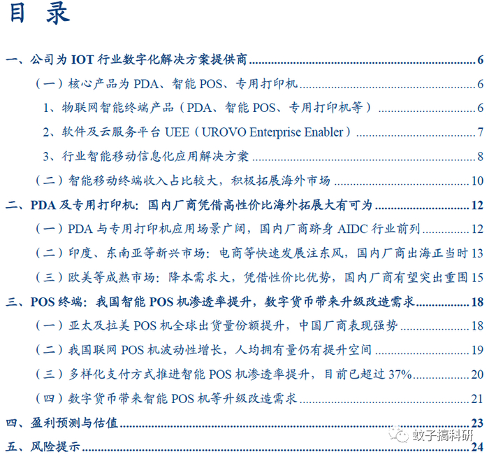 ✔ 风险提示:PDA需求存在不确定性;智能POS终端渗透率提升进程存在不确定性;海外市场拓展不及预期;行业竞争加剧。