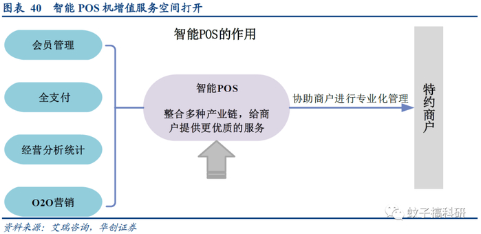 2) 增值服务的可能:智能POS机可以向客户提供会员管理、营销、数字分析等增值服务,商业模式不断丰富。