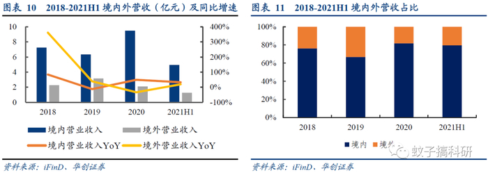 2019年的境内外收入占比达到将近2:1,20年国内疫情控制得当、海外新冠疫情恶化,使得20年境外收入占比有所下滑。当前公司境内外的发展有向好之势,2021H1境内外营业收入相比同期分别增长32.68%和19.54%