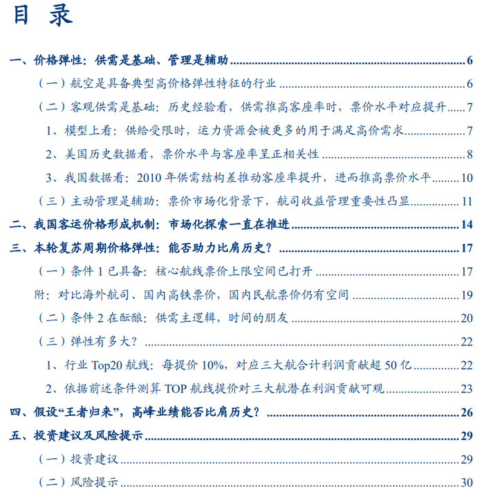 风险提示:疫情影响不确定性的风险,当前受疫情影响,行业客运量及客座率处于低位;价格弹性测算的前提及实现时间存在不确定性;油价大幅上升及人民币大幅贬值或对利润最终表现产生影响。