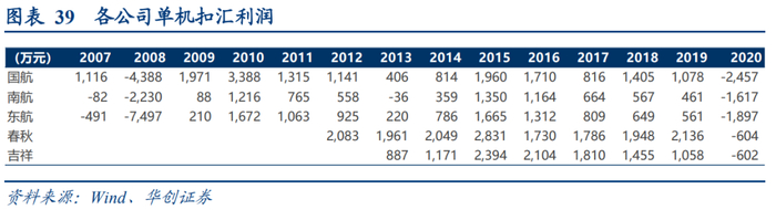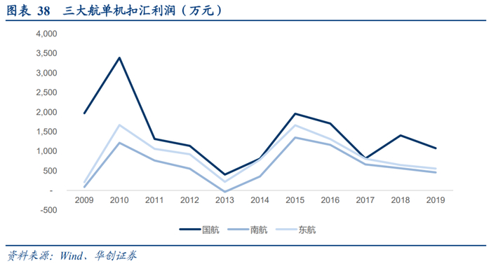 2009年以来,以国航为例,单机利润高点为2010年的3388万元,其次为09、15年均达到2000万左右,2011-19年平均单机盈利为1200万左右。