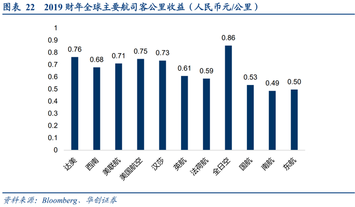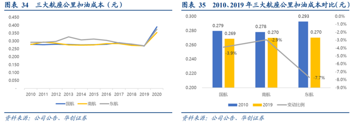 2020年,受疫情影响,业务量大幅下滑导致单位成本显著升高,而航司疫情期间在成本端做了更为严格的把控,预计在业务量恢复正常后,成本会回到甚至低于19年水平。