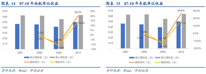东航:2010年座公里收入同比提升26.6%,其中客座率提升5.8pts,客公里收入提升17.1%,相较于2017年,座公里收入提升8.7%,其中客座率提升4.4pts,客公里收入提升2.6%。