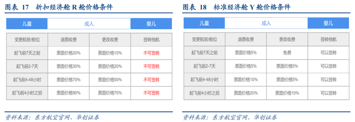 以上述东航的例子来看,为减少折扣经济舱R舱和标准经济舱Y舱的价差导致的转移行为,折扣经济舱还提供E舱机票,退票费率分别为10%、15%、30%和40%,更改费率为5%、10%、25%和35%,其灵活性介于折扣经济舱R舱与标准经济舱Y舱之间,票价也介于两者之间,为有相应需求的旅客提供了更为折中的选择。