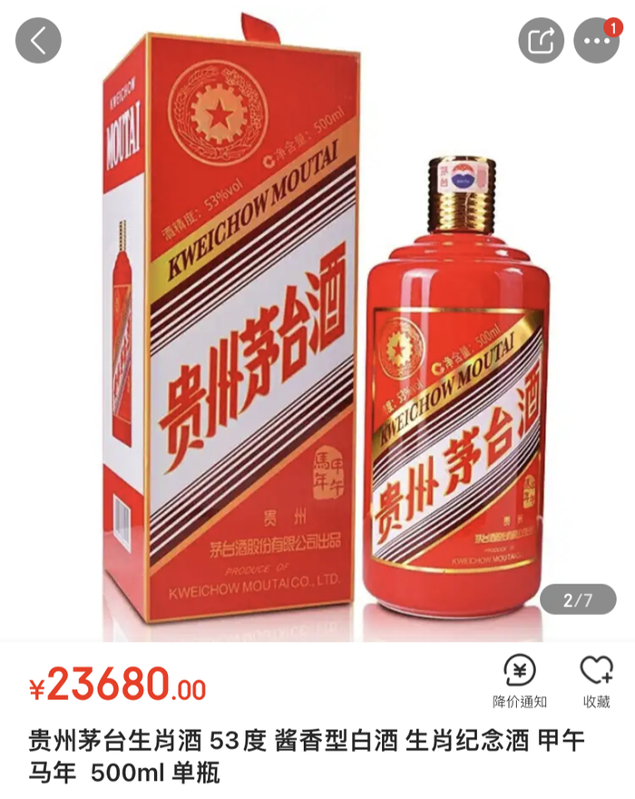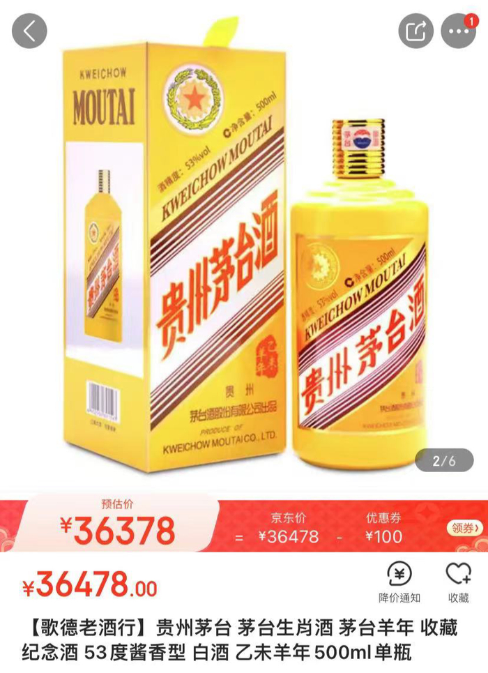 据北京商报记者不完全统计,截至今日,第一款生肖酒——马年茅台生肖酒原箱售价20000元/瓶,散瓶售价19000元/瓶;羊年茅台生肖酒原箱售价31000元/瓶,散瓶售价29000元/瓶。此外,剩下几款茅台生肖酒价格在4000-6000元/瓶区间不等。值得一提的是,马年茅台生肖酒与羊年茅台生肖酒的发售价均是849元/瓶。