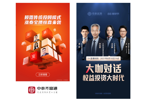 在“投”的方面,依托涨泰宝服务新模式的搭建,融入组合、交易圈、锦囊等多种产品形态,为客户提供直观、全面、多品种的投资服务。在“顾”的方面,依托图文直播、视频直播、短视频、诊股、内参等多种形式,为客户提供权威全面的市场资讯、投资策略解读等伴随式服务。2021年,更是颠覆传统投顾模式,重点推出“涨泰宝”服务,数十名优秀投顾在线服务,为签约客户优选个股,通过消息、短信、微信多渠道及时发送提醒,并通过操盘策略为客户解读市场、预判大势及跟踪个股走势,客户免费签约即享服务,投顾盈利才收费。服务上线以来,深受客户喜爱。