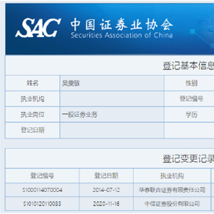 经中国经济网记者查询,上述内幕信息知情人吴某敏为吴雯敏,于2014年7月12日至2020年6月28日在华泰联合证券有限责任公司执业,岗位为一般证券业务。