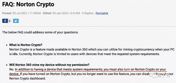 早在2021年6月份,诺顿就在官网公开宣称将加入一个用于采矿的新特性。