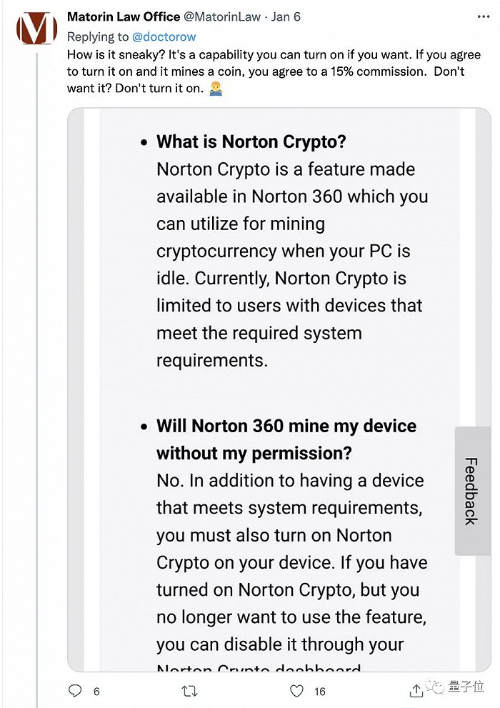 作为报酬,诺顿将从用户的挖矿所得中抽取15%的份额作为“服务费”。