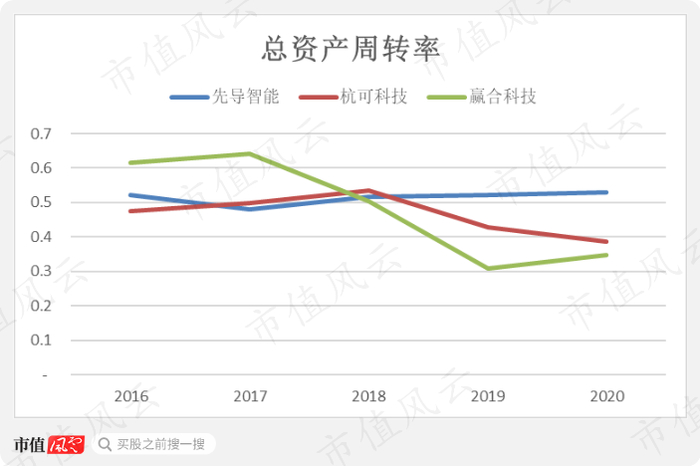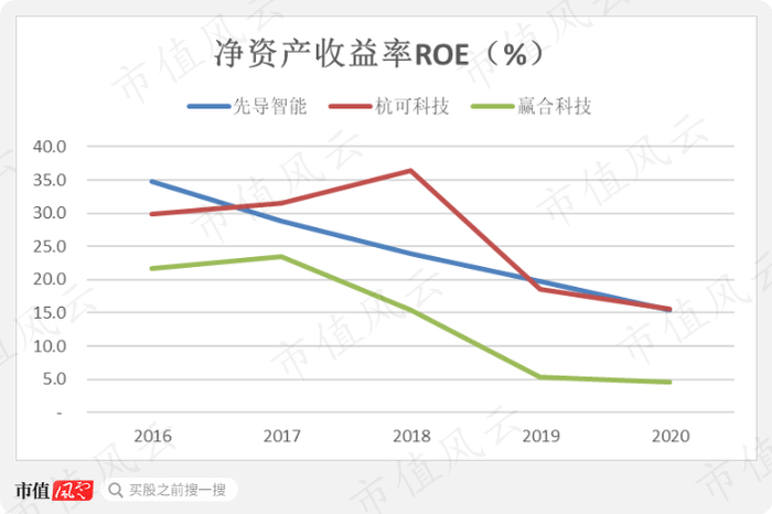 从ROE来看,先导智能和杭可科技在2020年旗鼓相当,大约在15%,而赢合科技已经跌到不及5%。