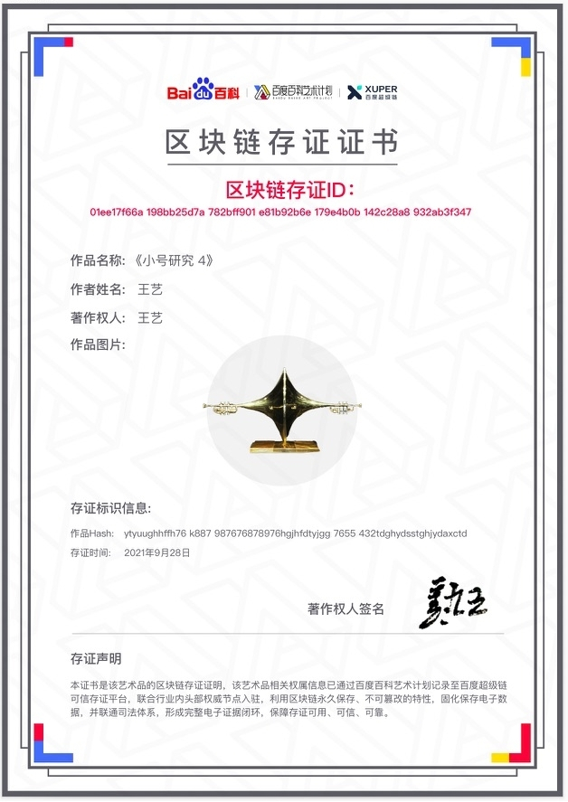 据悉,在数字作品领域,百度百科艺术计划近期联合了百度超级链,借助区块链、AI等创新技术共同推出数字艺术品区块链解决方案,全面保障艺术家及机构的知识产权,帮助数字作品发挥更大的市场潜力。未来,在元宇宙这样的空间互联网下,百度百科艺术计划还将协助艺术家拓展艺术品的数字化价值与更多艺术呈现方式的可能性。