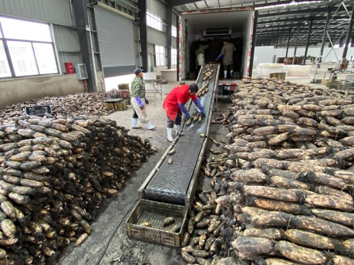 华贵食品集团位于洪湖市万全镇坨建村的扶贫车间,工人们有序地分拣着一筐筐新鲜挖上来的带泥莲藕,小的、坏的、破损的全被挑了出来。