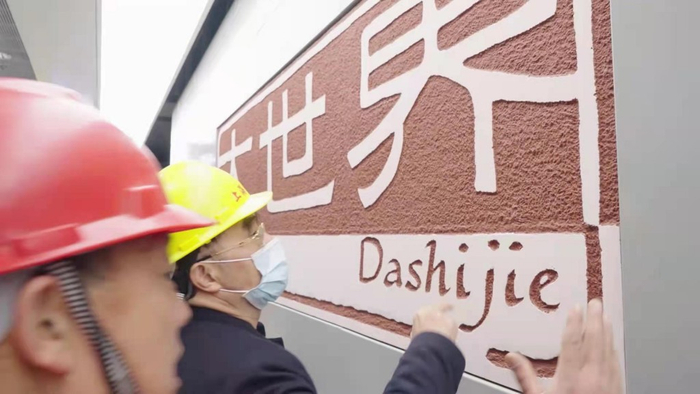周瑾介绍,上海地铁14号线23座标准地铁站配套装饰的92块站名牌中,“大世界站”最为特殊,是由特别配制的紫砂泥料整体手工成型、整板入窑烧成。