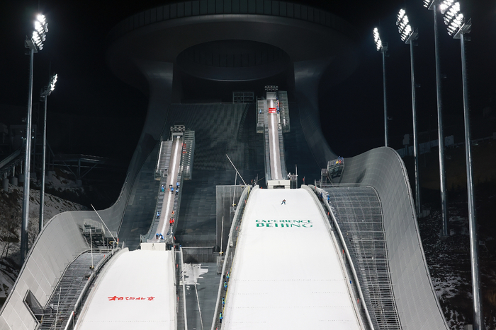 北京冬奥举办跳台滑雪测试赛。