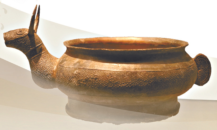两块东汉的画像砖拓片,则展现了当时长江流域先民富足的生活。一件收获渔猎画像砖中,描绘了池中鱼儿游弋,空中飞雁成行,先民们张弓仰射、田间劳作的场面;另一件盐场画像砖则证实了蜀地汉代盐业的发达,形象地表现了当时盐业生产的具体情况。展厅内还有西汉时期的青铜雁形尊、东汉晚期至蜀汉的陶摇钱树座等,专家说,这些文物表明,进入青铜时代后,长江流域的文明加快了发展进程,经过漫长的西周,到春秋战国时期,形成巴蜀滇文化圈、楚文化圈和吴越文化圈,一个融合了长江流域各地区文化、多元一体的长江文明逐渐形成。