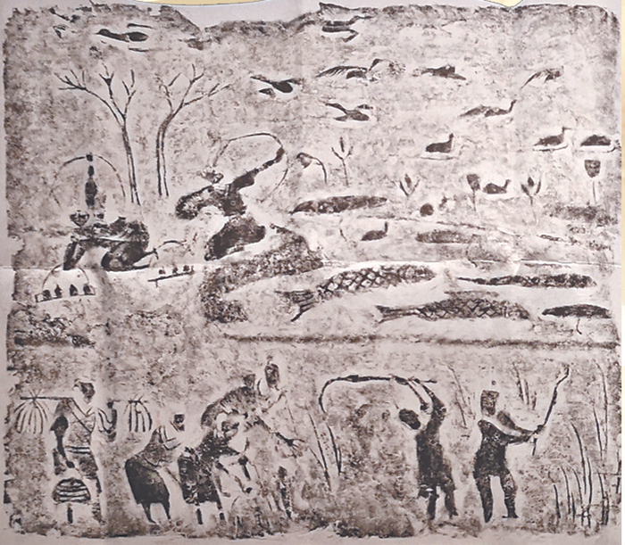 收获渔猎画像砖(拓片)