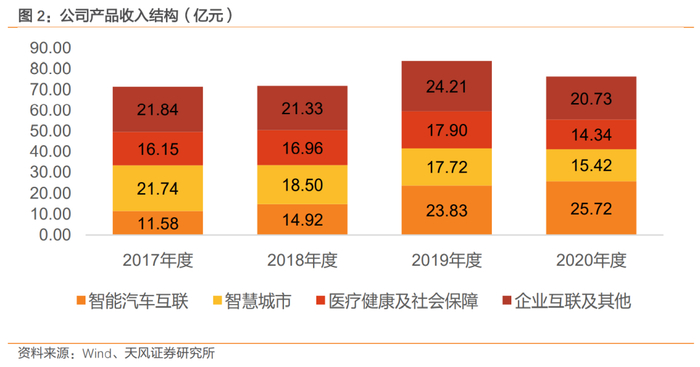2017年至2020年,公司智能汽车互联业务营收分别为11.58亿元、14.92亿元、23.83亿元、25.72亿元。