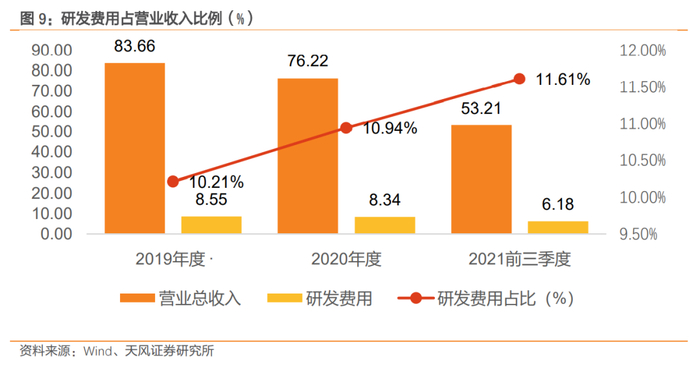 为进一步巩固和加强公司核心竞争力,公司继续加大研发投入,2019年至2021年前三季度,公司研发费用占营收比例为10.21%、10.94%与11.61%。截至2020年12月31日,公司申请专利2,017件,授权专利977件,登记软件著作权2,228件。