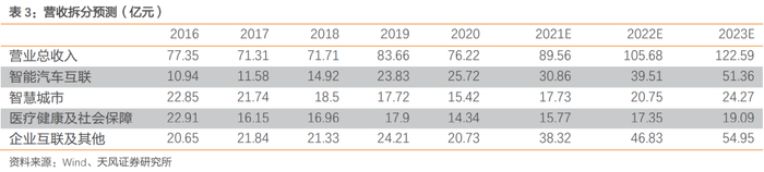 风险提示:汽车智能化、网联化的发展不及预期风险,智慧城市的推进进度不及预期风险,公司技术的迭代能力不及预期,公司大健康业务的推进进度不及预期。
