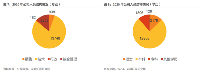 截至2020年12月31日,公司技术人员为13748人,占公司员工比例为80.53%。