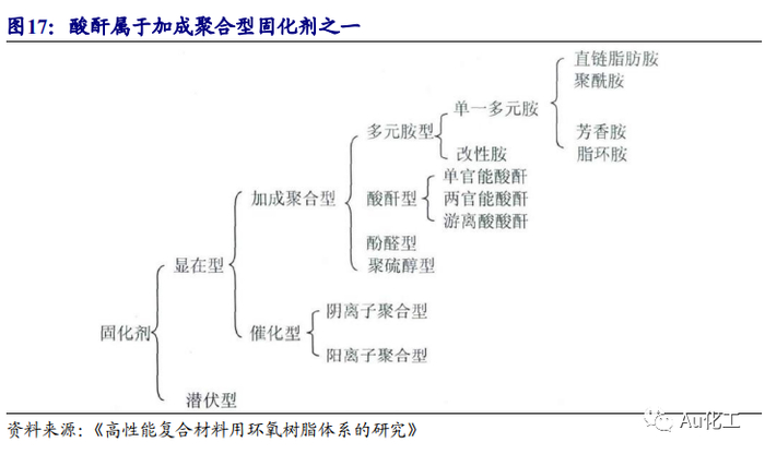 酸酐型固化剂是大梁拉挤成型的优先选择,风电将成为酸酐不可忽视的的新兴应用领域。拉挤板材的原材料主要采用以高性能环氧树脂为基体、碳纤维/玻璃纤维为增强材料的复合材料,其中环氧树脂在固化前是一种线性热塑性低聚物,不具有使用价值,环氧树脂从热塑性线性结构转变为网状结构的过程称为固化,固化后的树脂具有机械强度并具备使用价值,固化剂对固化成型起着至关重要的作用。目前环氧树脂固化主要使用加成聚合型固化剂,其中又以多元胺型和酸酐型固化剂使用最多。从使用条件看,多元胺性固化剂多属于常温固化剂,酸酐型固化剂则为加热固化剂。采用环氧树脂体系制造拉挤产品,如以固体胺类为固化剂,树脂体系粘度大,添加稀释剂后力学性能和耐热性能会大幅下降,也降低电性能;以甲基四氢苯酐为固化剂,能在数小时内保持低的粘度,对碳纤维有较好的浸渍作用。根据光威复材300万m/a碳梁项目环评,碳纤维、环氧树脂、酸酐固化剂消耗量分别为1719t/a、400 t/a、400 t/a。2019年Vestas装机交付量12.9GW,光威碳梁销量649.2万米,约占Vestas碳梁30%的供应份额。因此,对于大梁而言,1GW对应962t碳纤维/224t酸酐固化剂。我们预计2025年全球风电新增装机量120GW,按拉挤碳梁渗透率60%,新增酸酐需求1.6万吨;考虑拉挤工艺在传统玻板同样也是趋势,整体风电叶片大梁对酸酐的需求预计超过3万吨;长远来看,拉挤成型工艺作为一种连续生产固定截面纤维增强复合材料的成型方法,在电气设备、耐腐蚀部件及军事等领域的推广将带动酸酐固化剂需求快速提升。