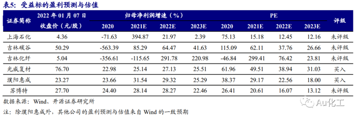 受益标的盈利预测与估值