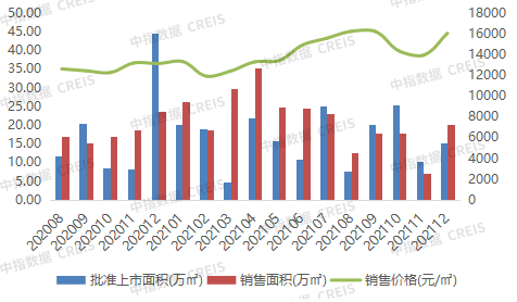 图:2020.08-2021.12月泰州市涉宅用地供销量价走势