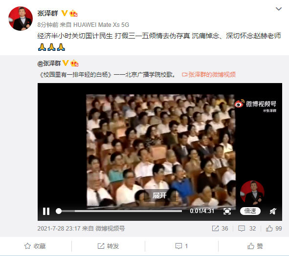 1月10日,据著名主持人@张泽群 消息,央视主持人赵赫去世。张泽群在社交平台发文悼念:“经济半小时关切国计民生,打假三一五倾情去伪存真,沉痛悼念、深切怀念赵赫老师”。
