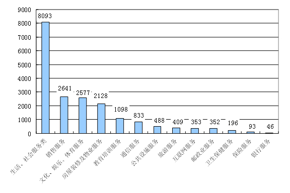 按服务种类来分,涉及生活、社会服务,销售服务,文化、娱乐、体育服务的消费者投诉居前三位(见图3)。