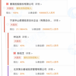 天眼查显示,蔷薇资本由林治洪担任董事长、总经理的蔷薇股份全资持股,其执行董事正是田中精机原董事长林治洪。穿透蔷薇股份股权结构,林治洪直接持股40%的宁波华山君德投资控股蔷薇股份;此外,中民投、信发集团、巨人网络(002558.SZ)等是蔷薇股份的股东。