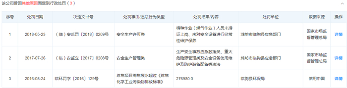 天眼查显示,2016年,山东雷奥新能源曾因“其他有履行能力而拒不履行生效法律文书确定义务”,数次被最高人民法院公示为失信公司。此外,该公司曾因生产安全事故应急救援类、重大危险源管理类及安全设备使用维护及防护装备配备类违法等,于2016年至2018年数次遭当地监管部门行政处罚。