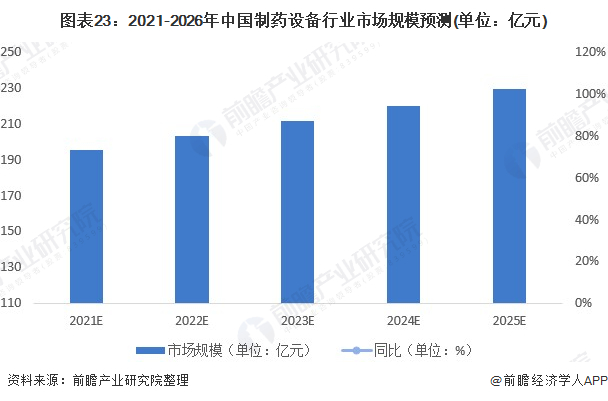 根据初步预测,2021-2026年,中国制药设备行业市场规模将从195亿元增至230亿元。