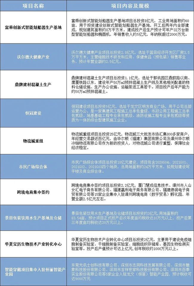 龙海区签约项目15个,总投资21.38亿元