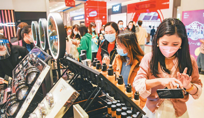 关税持续下调,更多物美价廉的商品进入消费者的购物车。元旦期间,海口各大免税店推出多种优惠促销活动。1月1日,海口日月广场免税店内,前来选购免税商品的顾客络绎不绝。王程龙摄(人民视觉)