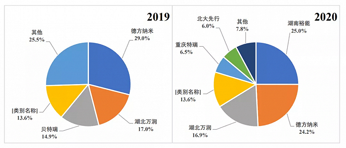 数据显示,2020年整个磷酸铁锂正极材料市场的出货量也就12.4万吨。这其中,湖南裕能2020年磷酸铁锂产量3.1万吨,销量3.13万吨,2020年设计产能为2.94万吨;德方纳米2020年磷酸铁锂产量3.25万吨、销量3.07万吨;贝特瑞2020年正极材料产量2.08万吨、销量2.14万吨(未单独披露磷酸铁和三元材料产销量)。