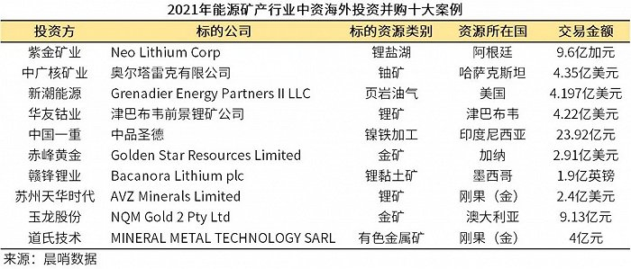 2021年能源矿产行业中资海外并购十大交易:锂,锂,锂