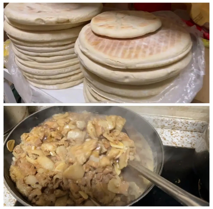 土豆丝、尖椒炒蛋、手撕包菜、锅盔