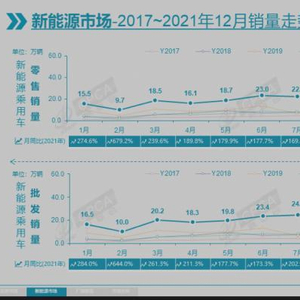 数据显示,去年12月新能源乘用车零售销量达到47.5万辆,同比增长128.8%,环比增长25.4%。2021年全年,新能源车零售298.9万辆,同比增长169.1%。