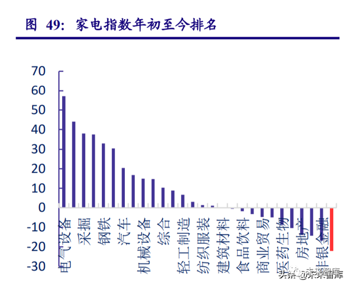 分子版块来看,家电子版块表现差异较大。白电板块表现最为弱势,年初至今下跌了 26.72%,主要原因为内销受国内部分地区疫情 反复、零售端表现较弱影响,外销受海运压力较大及基数较高影响,出口增速下滑,原材料价 格上涨也对业绩影响较大。厨电板块近期反弹明显,年初至今下跌 6.14%。