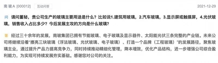 日前,另一家玻璃龙头南玻A在投资者互动平台表示,经过30余年的发展,南玻集团已拥有节能玻璃、电子玻璃及显示器件、太阳能光伏三条完整的产业链。未来公司将继续沿着“擦亮三块玻璃(浮法玻璃、光伏玻璃、电子玻璃)、打造一个品牌(工程玻璃)”的发展路径,聚焦玻璃主业,通过提升产品力提高竞争力,同时持续推动精细化管理,降本增效,优化产品结构,进一步增强公司综合盈利能力,为实现可持续发展夯实基础。此外,公司也表示,公司工程玻璃产能处于行业领先地位。