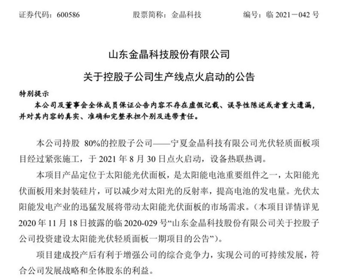 光伏玻璃正在成为金晶科技业绩增长的新动能。