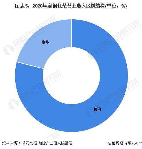宝钢包装已拥有上海、河北、成都、佛山、武汉、河南、越南平阳、越南顺化、哈尔滨等九家国内外二片罐企业,搭建起了可以辐射全国的二片易拉罐制造、销售、服务网络,同时在东南亚地区打开了市场,为相应区域用户提供快捷、优质服务。2020年宝钢包装境内业务收入43.28亿元,占比79%;境外业务收入11.56亿元,占比21%。