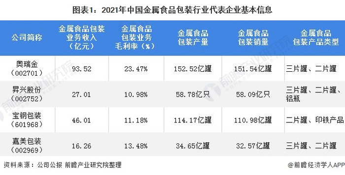 原标题:干货!2022年中国金属食品包装行业龙头企业分析——宝钢包装:专注于二片罐生产 来源:前瞻产业研究院