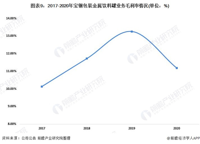10%左右。作为食品包装的一个重要组成部分,金属包装凭借其优异的包装性能,备受高端食品企业的青睐。目前国内金属食品包装行业的龙头企业主要有奥瑞金、昇兴股份、宝钢包装、嘉美包装等。其中,宝钢包装是国内专业从事生产食品、饮料等快速消费品金属包装的龙头企业。