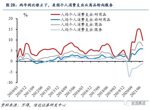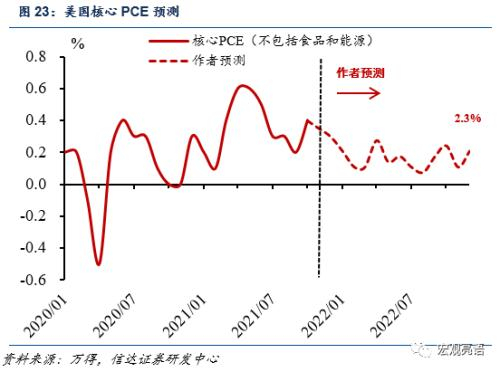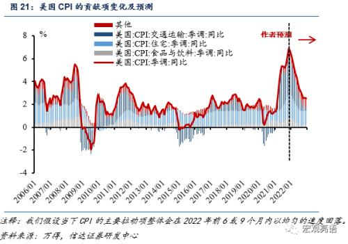 我们预测美国的核心PCE(扣除食品饮料和能源)会在2022年底会回归至2.3%左右。此前美国耐用品行业供需失衡,在2021年第二季度贡献了整体核心PCE的高增长。