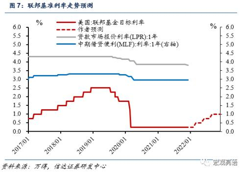 随后2016年美联储进入加息周期后,我国未再次调降基准利率(除了2016年2月MLF利率刚推行时,为了丰富利率种类和期限,在美联储联邦基金利率长时间维持不变的环境下,调降过一次MLF利率0.25%)。回顾历史我们不能找到与当下完全相同的宏观环境,但可以归纳得到,无论中美经济周期是否存在错位,中国和美国整体的基准利率从来没有出现过背向而驰的情况。由此可见,在美国2022年加息周期内,我国政策利率下调的概率极小。