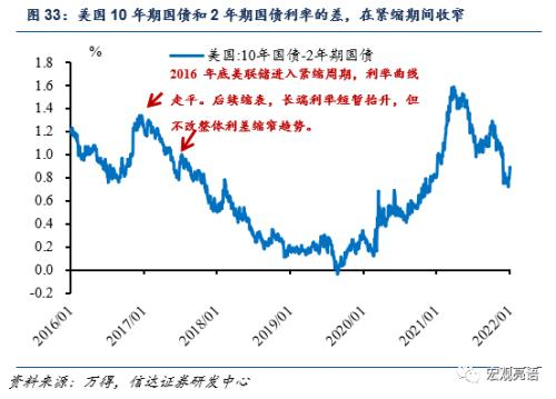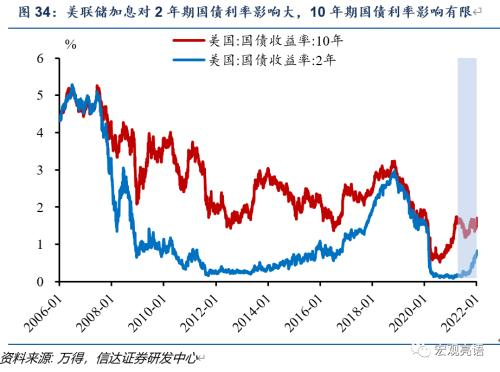 当下美国10年期国债利率水平在1.6-1.7%,我们预计随着美国2022年加息三次(可能分别在3月、6月、12月,每次0.25个百分点),利率波动区间会不断上行,但可能受加息影响的上行幅度有限。美联储紧缩期间,缩表即抛售国债可能对10年期国债利率的影响更为直接。
